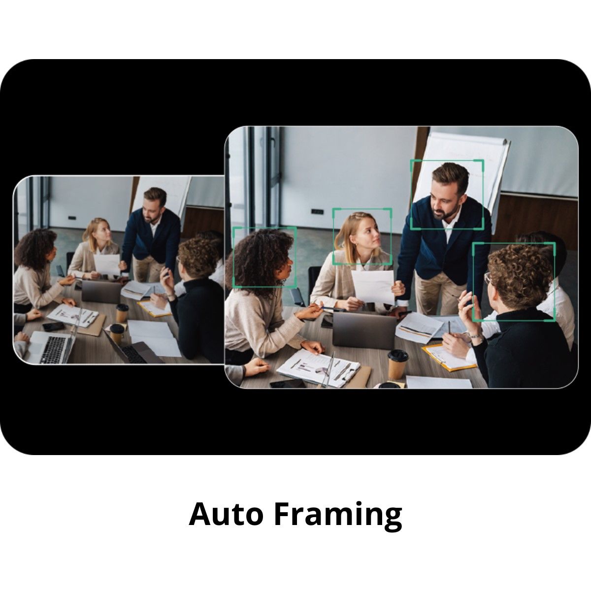 - Auto Framing : détecte automatiquement le nombre et la position des participants pour un cadrage optimal ;