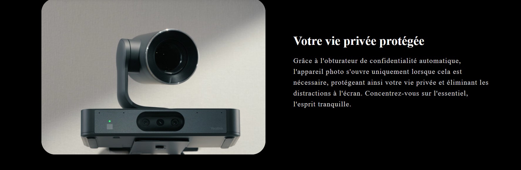 Lorsque la caméra n'est pas utilisée, elle se positionne vers le bas pour protéger la confidentialité de l'utilisateur