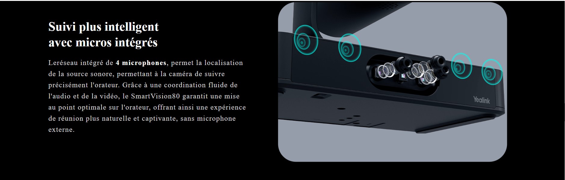 Grâce à 3 à 4 microphones intelligemment répartis sur le pourtour du système de conférence ou du speakerphone, les voix sont captées avec précision, même lors d'échanges animés. Résultat : des conversations naturelles, nettes et efficaces.